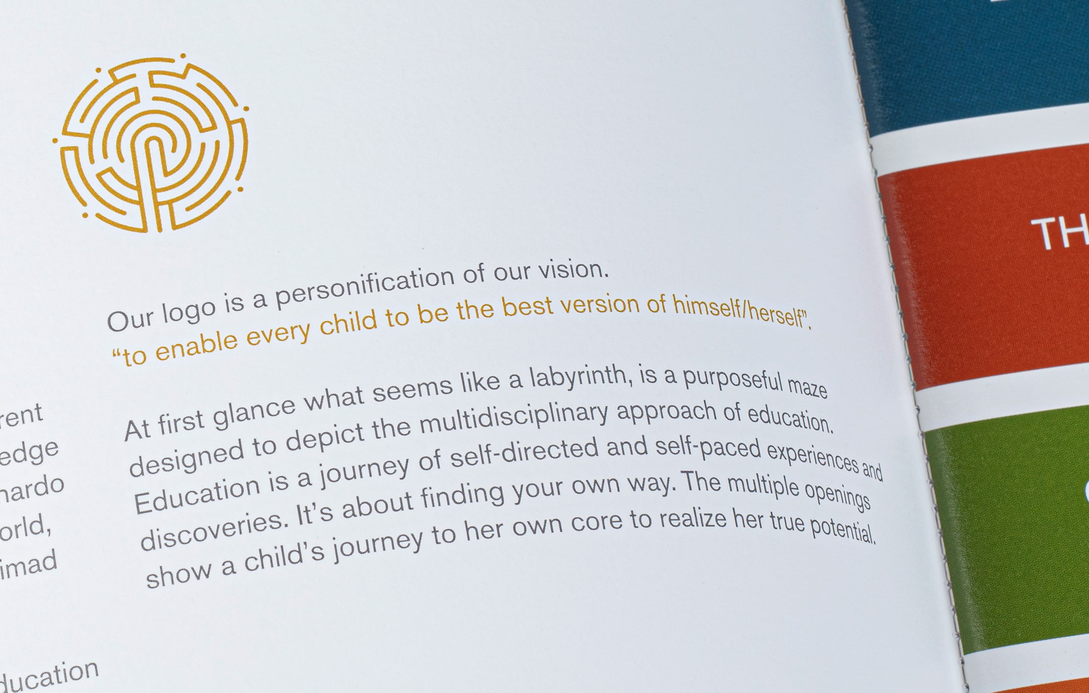 mCube used the school’s interdisciplinary approach to education based on creativity, innovation, and experience; into a playful symbol inspired by a labyrinth. It is crafted to be a workable puzzle that exhibits the spiral into a purposeful meandering path. It represents a journey from turning inwards to exploring outward.